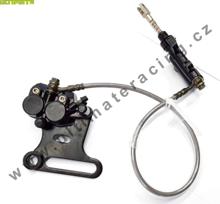 Zadní brzda pitbike dvoupístová Kompletní jednopístová nožní brzda pro pitbike. Délka hadičky: cca 60 cm Rozměry viz. foto v detailu